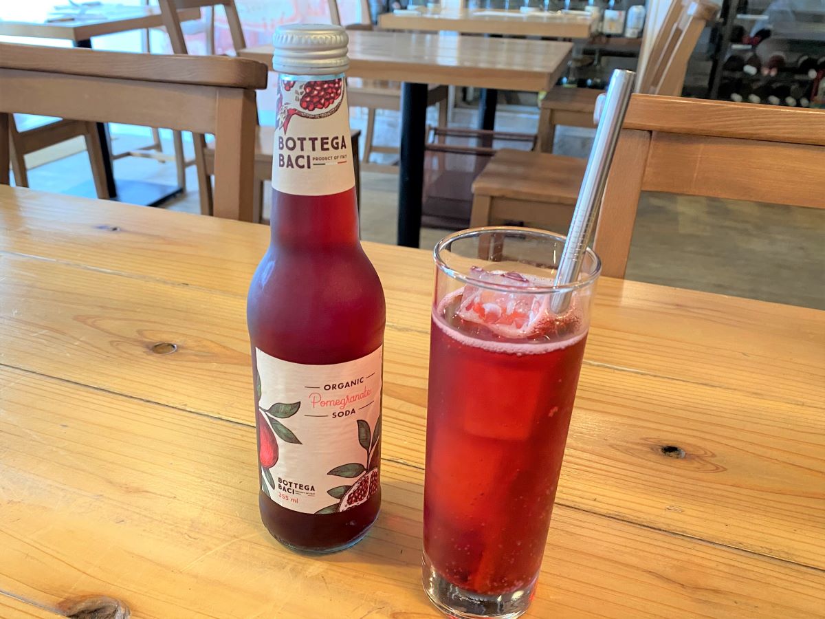 コーヒー、紅茶などの定番メニューはもちろん、ソーダなどのドリンクもオーガニックにこだわっています。今回はオーガニック、ベジタリアンやグルテンフリーなどのナチュラルな食品を扱っている「Bottega Baci」 の「オーガニックザクロソーダ」660円を注文。ザクロの酸っぱさの後に甘さがしっかりと感じられる、フルーティーで華やかな一品でした。そしてグラスに入っていたのは、ステンレス製のストロー。洗って繰り返し使えるものを使用し、地球環境への配慮も忘れません!