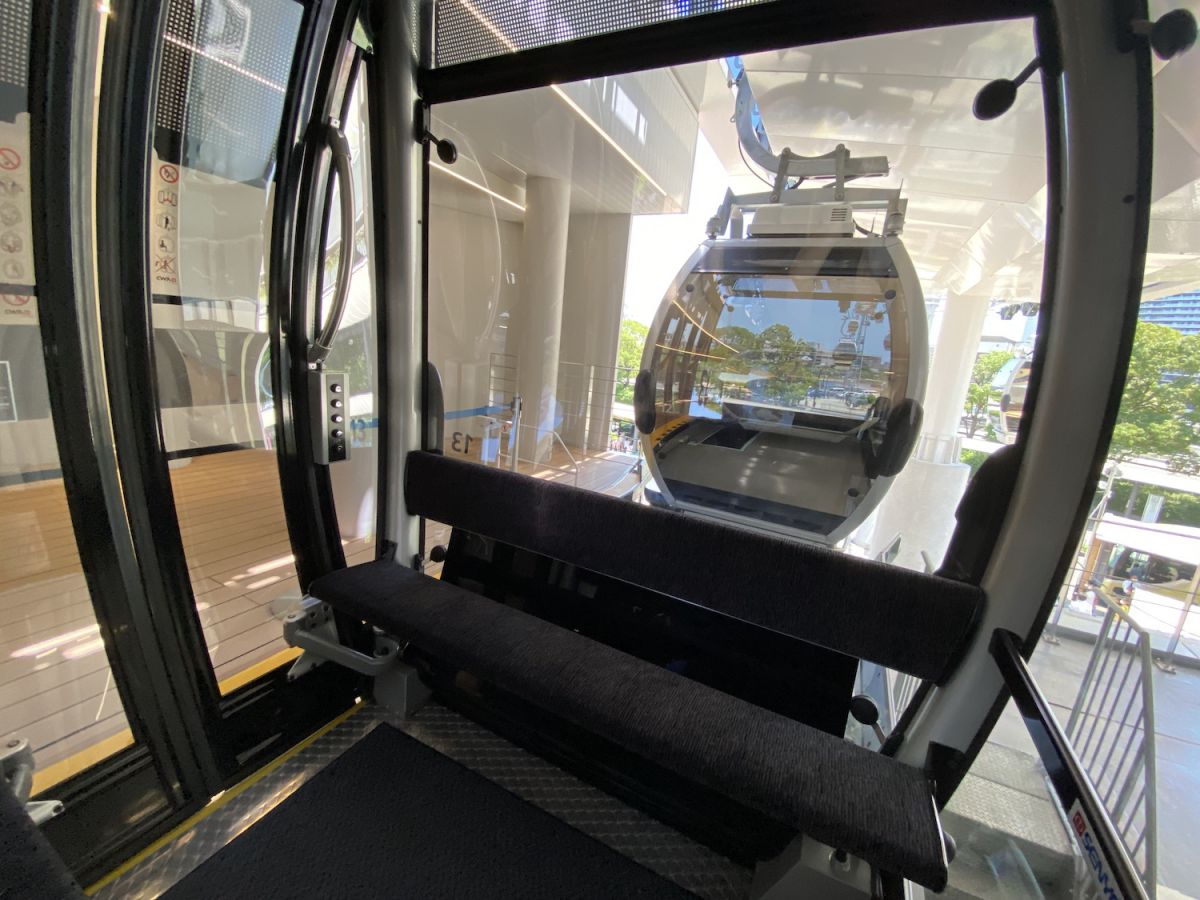 また、乗り合いが多いロープウェイですが、「YOKOHAMA AIR CABIN」では1組ずつ乗れるのもポイント。最大8人乗りですが2021年7月現在は4人が定員です。大きなガラスにはスモークコーティングが施されており、外から見えづらくプライベートな空間に安心します。