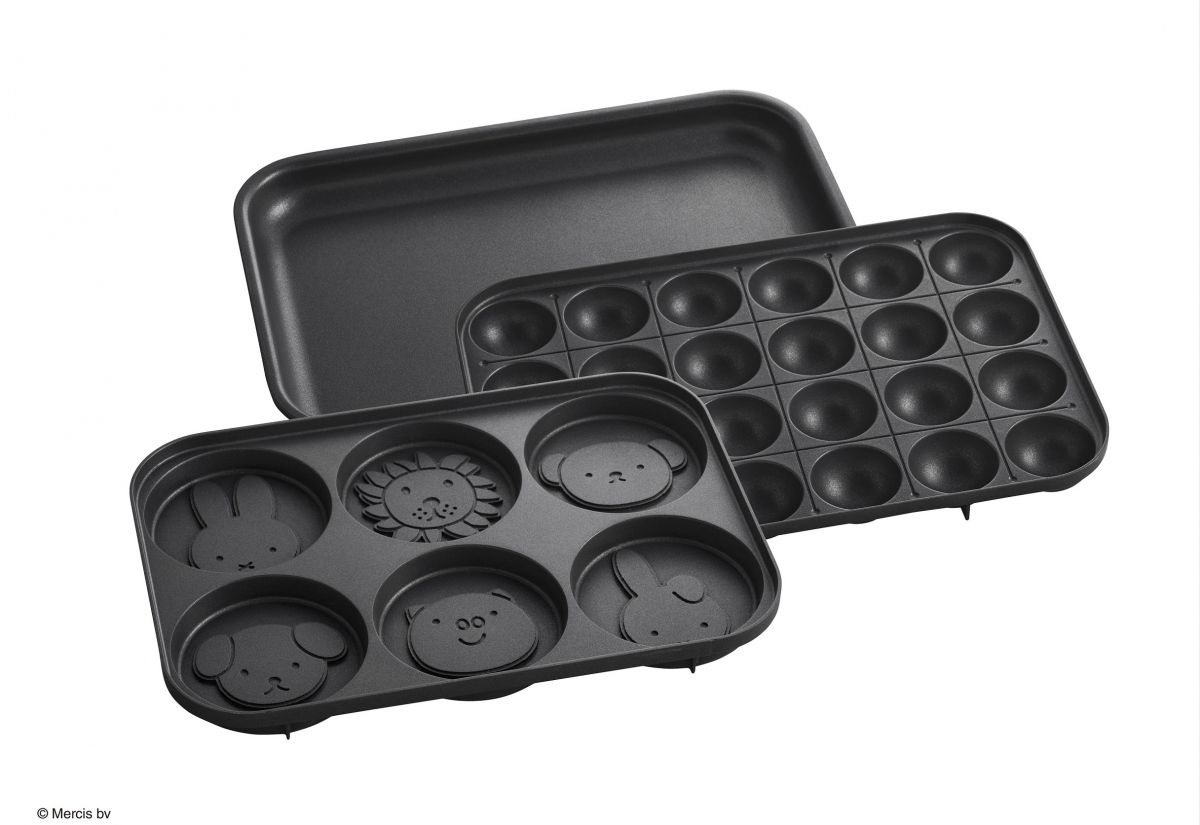 プレートは、平面、たこ焼き、ミッフィーたちの形に焼けるパンケーキの3種類付き。オリジナルパッケージ入りなので、ギフトにもおすすめです。