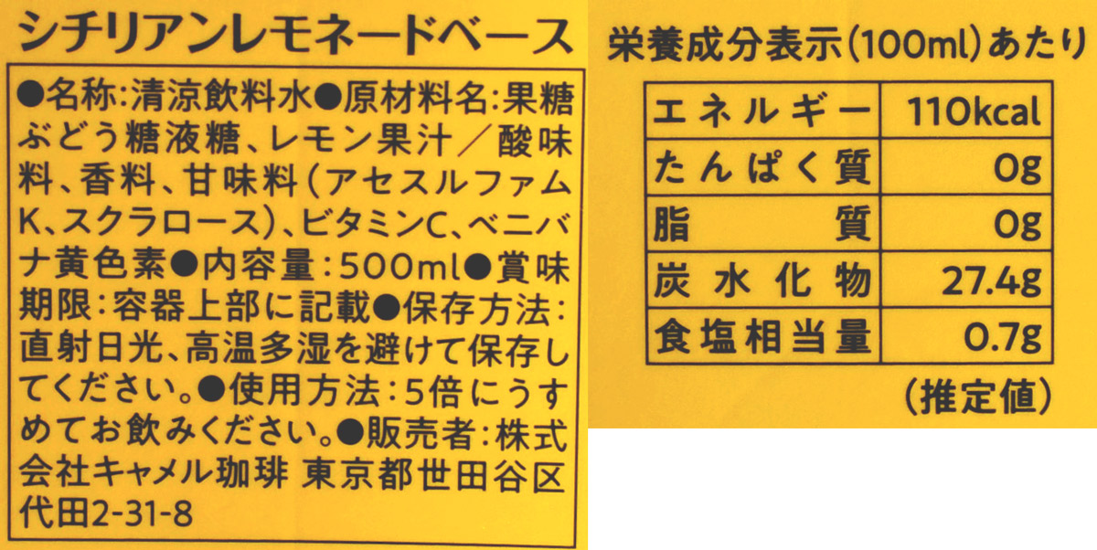 まずご紹介するのは、南イタリア・シチリア産のレモンを使用した、5倍希釈タイプの「シチリアン レモネードベース」500㎖398円。太陽の光をたっぷり浴びて育ったシチリアンレモンの爽やかな香りと、すっきりとした酸味がギュッと詰まった人気商品です。