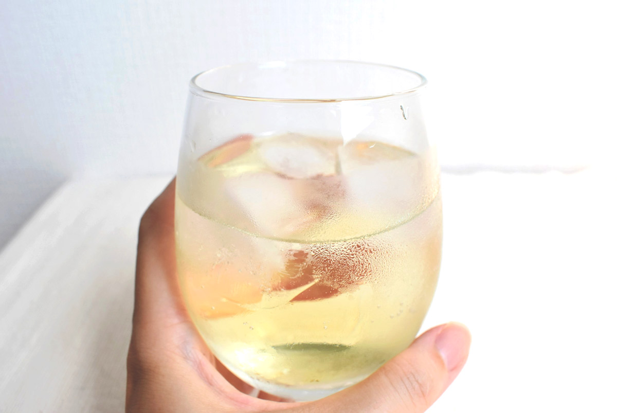 まずは炭酸水で割って飲んでみると、マスカットのような甘い香りのなかに、レモンの酸っぱさも感じられてスッキリとした飲み口です。
