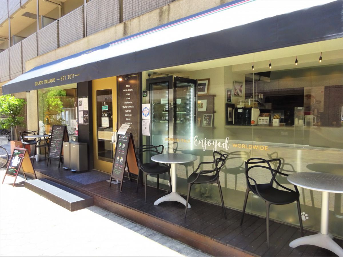 夏はテラス席も人気なほか、店の目の前にある靱公園を散歩しながらテイクアウトしたジェラートを食べる人も多数。“リトルイタリア”といわれる京町堀のおしゃれなロケーションが、「FLOR」のジェラートをさらにおいしくしてくれます。