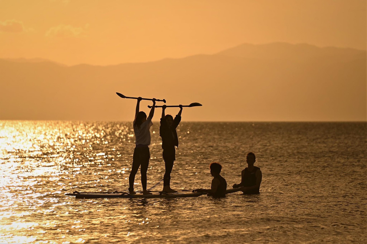 人気のアクティビティといえば、SUP。サーフィンよりも大きめのSUPボードの上に立ち、パドルを漕いで水面を進んでいきます。場所によってはボードの上から湖底がのぞけるそう!レッスン(有料)も受付中です。