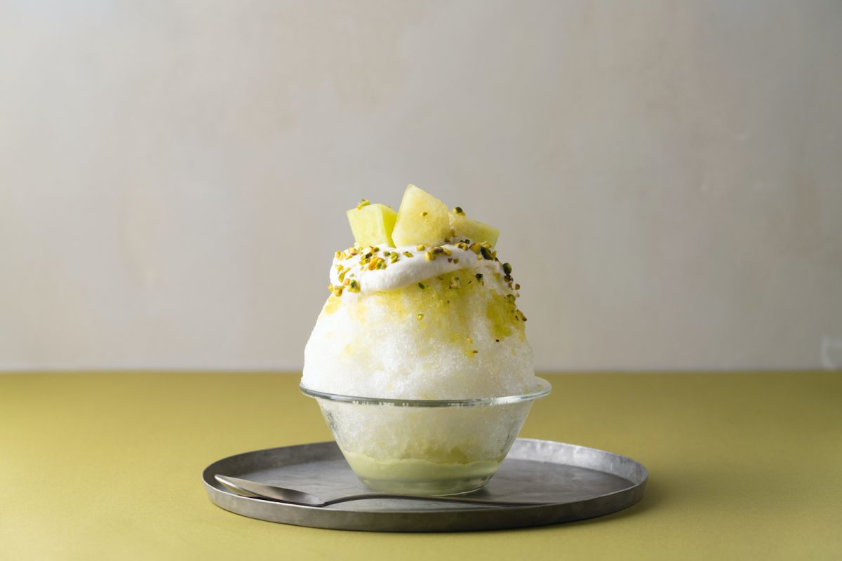 第1弾として登場するのは2種類のかき氷。「生メロンとわさびクリーム ピスタチオ」(1350円)は、京都産生メロンに無添加ピスタチオを掛け合わせ、わさびの隠し味がきいた一品です。わさびの隠し味がどのくらい感じられるのか、気になりますね!