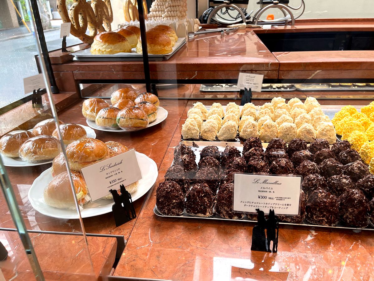 ショーケースには「メルベイユ」のほかに、「フランス産バターのクロワッサン(250円)」や、北フランスのブリオッシュである「クラミック(650円)」、そのプレーンを使用した「サンドイッチ(350円)」なども。
