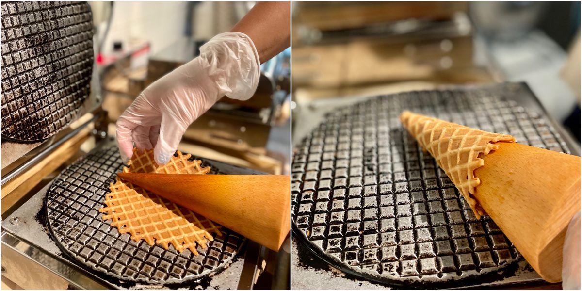 「Harlow ICE CREAM」では、なんとコーンもお店で毎日手焼きしているんです!