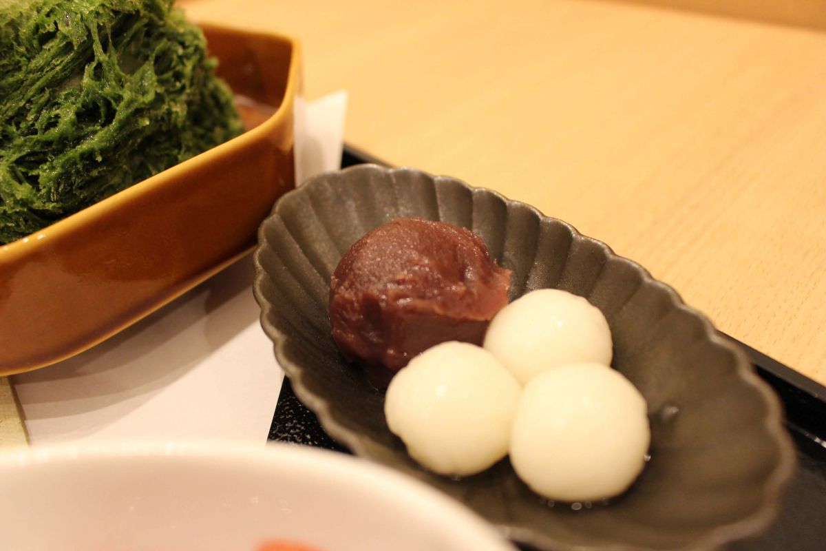そんな「ocha room ashita ITOEN」でいただけるのが、こちらの「氷いちごと抹茶金時」。抹茶ベースのかき氷に、別添えでイチゴソース、練乳、あんこ、白玉が付いてきます。緑、白、赤と見た目にも色鮮やかなかき氷。トッピングも豊富なので、味変を楽しめそうです!
