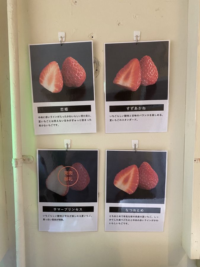 タッチパネルの横には、イチゴの簡単な説明書きもあり、特徴がひと目でわかるのがうれしい!イチゴは全国各地の農家から仕入れる旬のものを使用。撮影時は夏が旬のイチゴが揃っていましたが、季節によって異なる種類のイチゴが楽しめます。