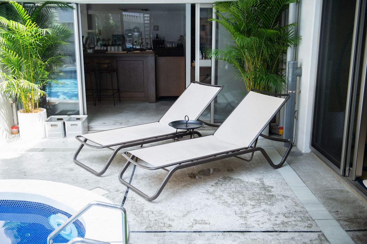 プールサイドには外気浴を過ごすのにぴったりなデッキチェアも用意されています。