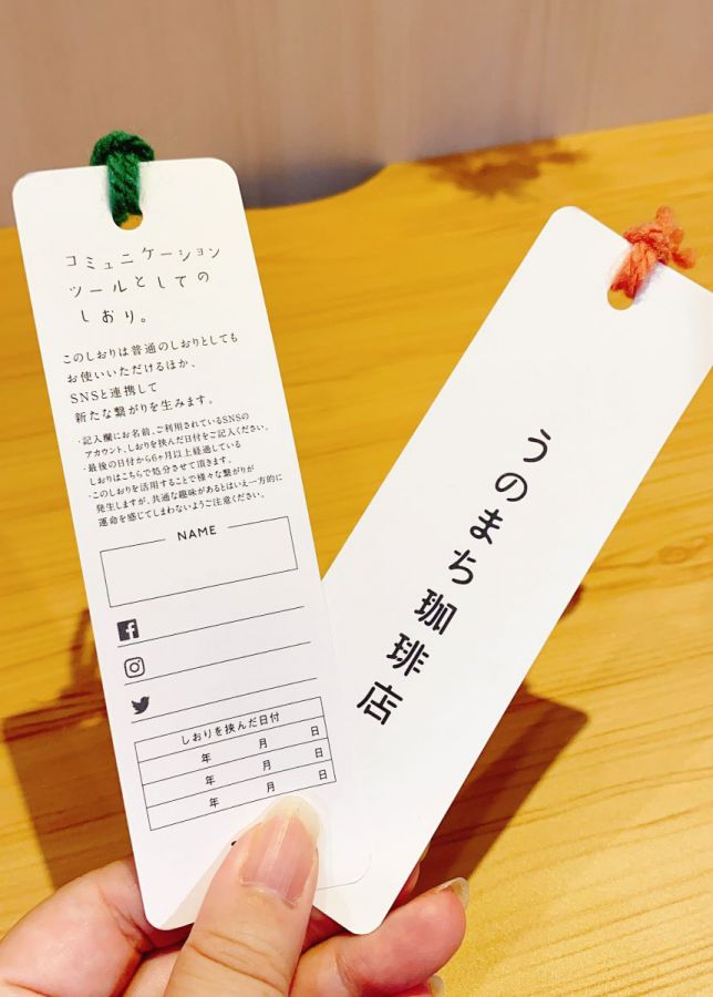 なぜしおりのデザインなのかといえば、「うのまち珈琲店」がブックカフェだから。もともと「うのまち珈琲店」が岡山県の図書館に隣接したブックカフェとして誕生したことから、各地でブックカフェとして展開をされているそうです。広々とした店内の随所に本が置かれており、その数はなんと約1000冊!