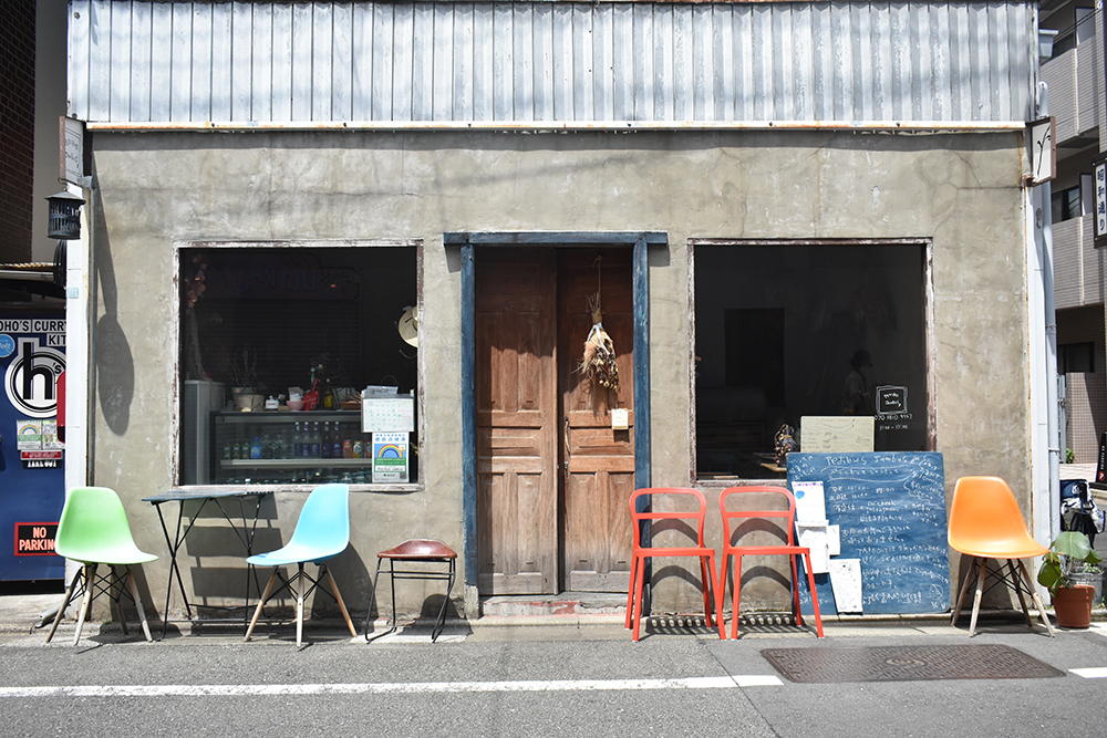 東京・祐天寺駅から商店街を3分ほど歩くと、カラフルなチェアがかわいらしく並ぶフランス食堂「Pedibus Jambus」があります。