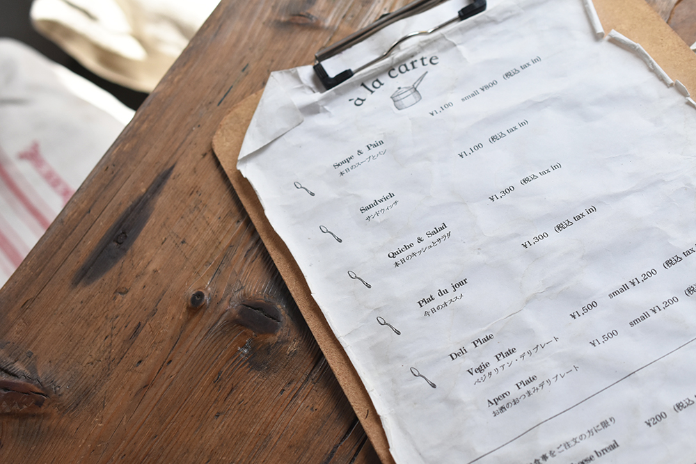 お店ではスープとグリルチーズパンのセットやサンドウィッチ、本日のキッシュとサラダ、今日のオススメなど5種類以上のメニューからチョイスできます。