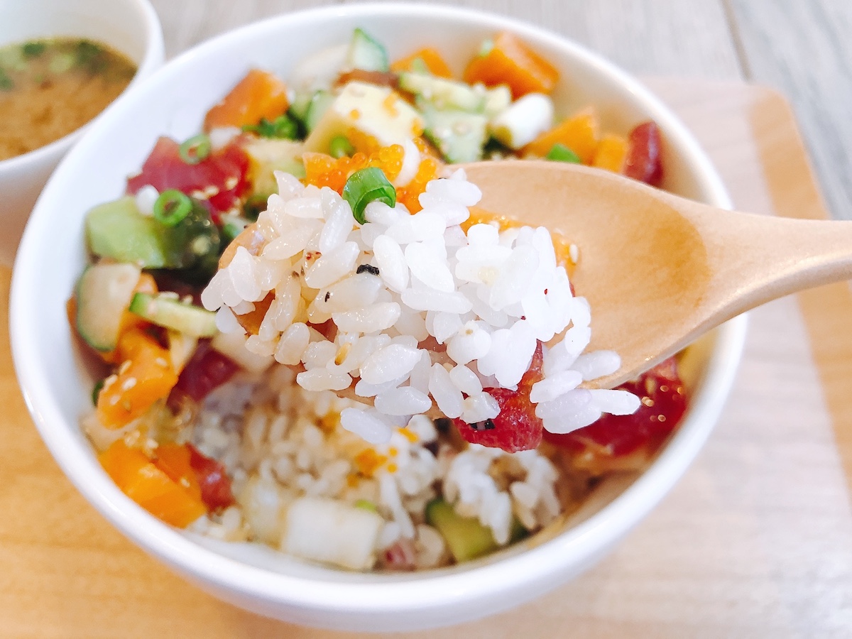 具材の下にはお米がぎっしり詰まっています。白米をベースにした六穀米を冷やしたもので、とてもヘルシーなんだそう。ほかにも納豆とイカが入った「シェフズスペシャル」Sサイズ1100円、Mサイズ1150円や、エビ、アボカドにハラペーニョが入った辛党におすすめな「メキシカン」Sサイズ1050円、Mサイズ1200円など、ユニークなメニューが盛りだくさん!季節限定のメニューもあるためぜひお店でチェックしてみてくださいね。居心地のよい空間でいただく絶品料理は幸せを届けてくれます。