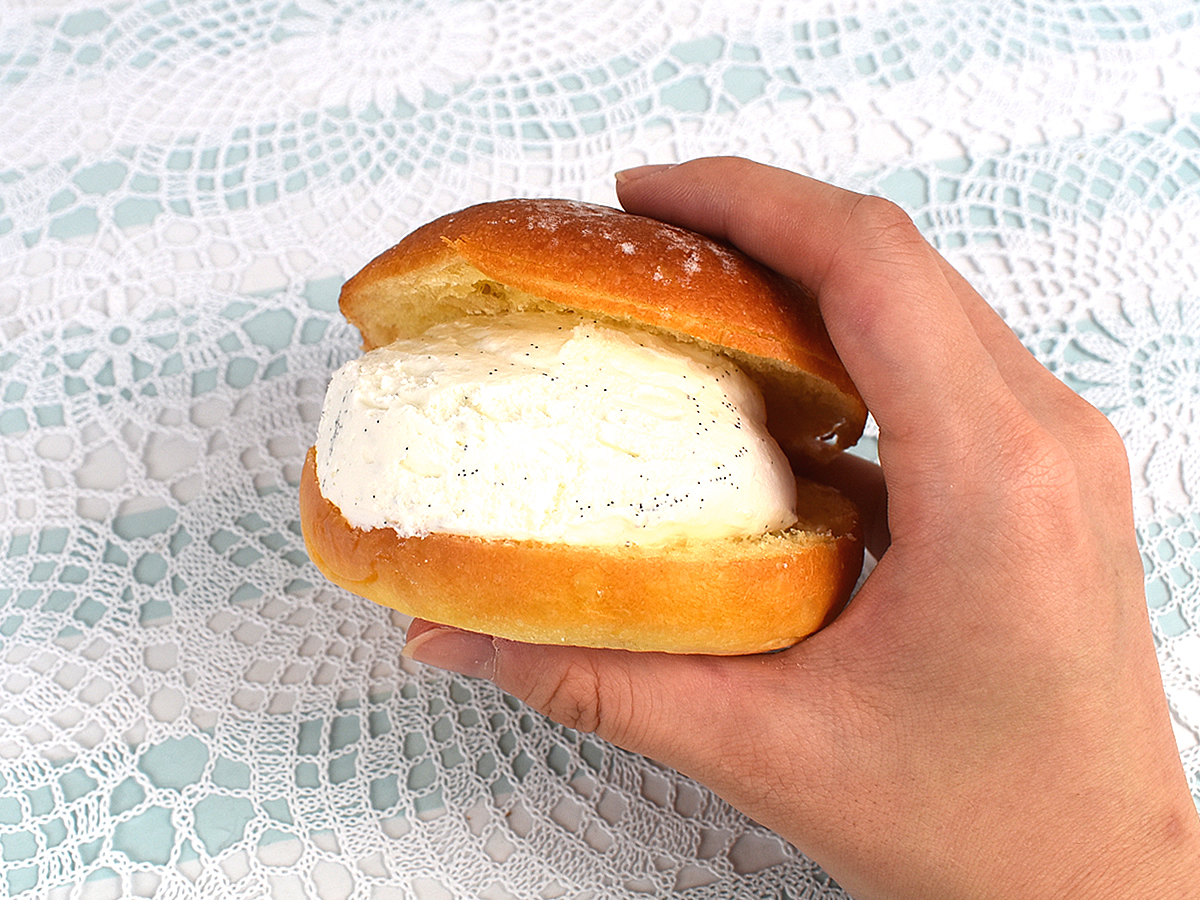クリームを挟んでいるブリオッシュ生地は、バターの旨味を楽しめる本格派。ふんわりとやわらかく、噛むとほろほろ崩れる食感が絶妙です。国産小麦の小麦粉をブレンドしており、鼻に抜けていく豊かな香りも見事。ほのかな塩味と上品な甘みが、クリームのコクとマッチしています。見た目に反して全体的に甘さ控えめのスイーツに仕上がっているので、甘すぎるスイーツが苦手な人でもおいしく食べられそう。