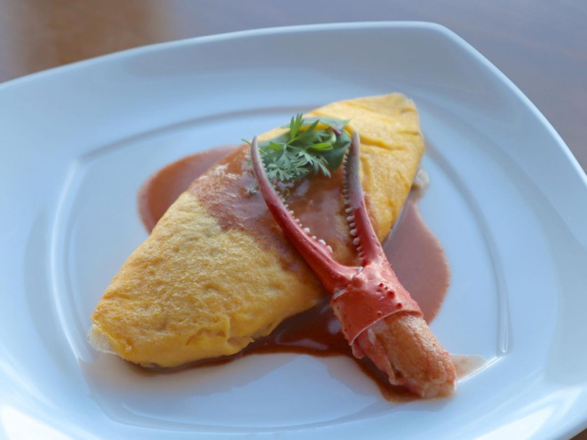 朝食の中には日替わりメニューがあり、卵料理では「ずわい蟹のオムレツ」に出会ったらぜひ食べてみてください。ふわふわな卵をナイフでカットすると、中には濃厚な蟹味噌が隠れています。添えてある蟹と濃厚なアメリケーヌソースとともに味わうと、いつになく贅沢な朝食タイムが過ごせること間違いなし。