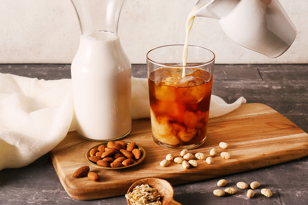 ティーラテシリーズには、「アーモンドミルクラテ」や「オーツミルクラテ」、「ソイミルクラテ」(各Mサイズ550円、Lサイズ660円)、「ミルクラテ」(Mサイズ528円、Lサイズ638円)も。