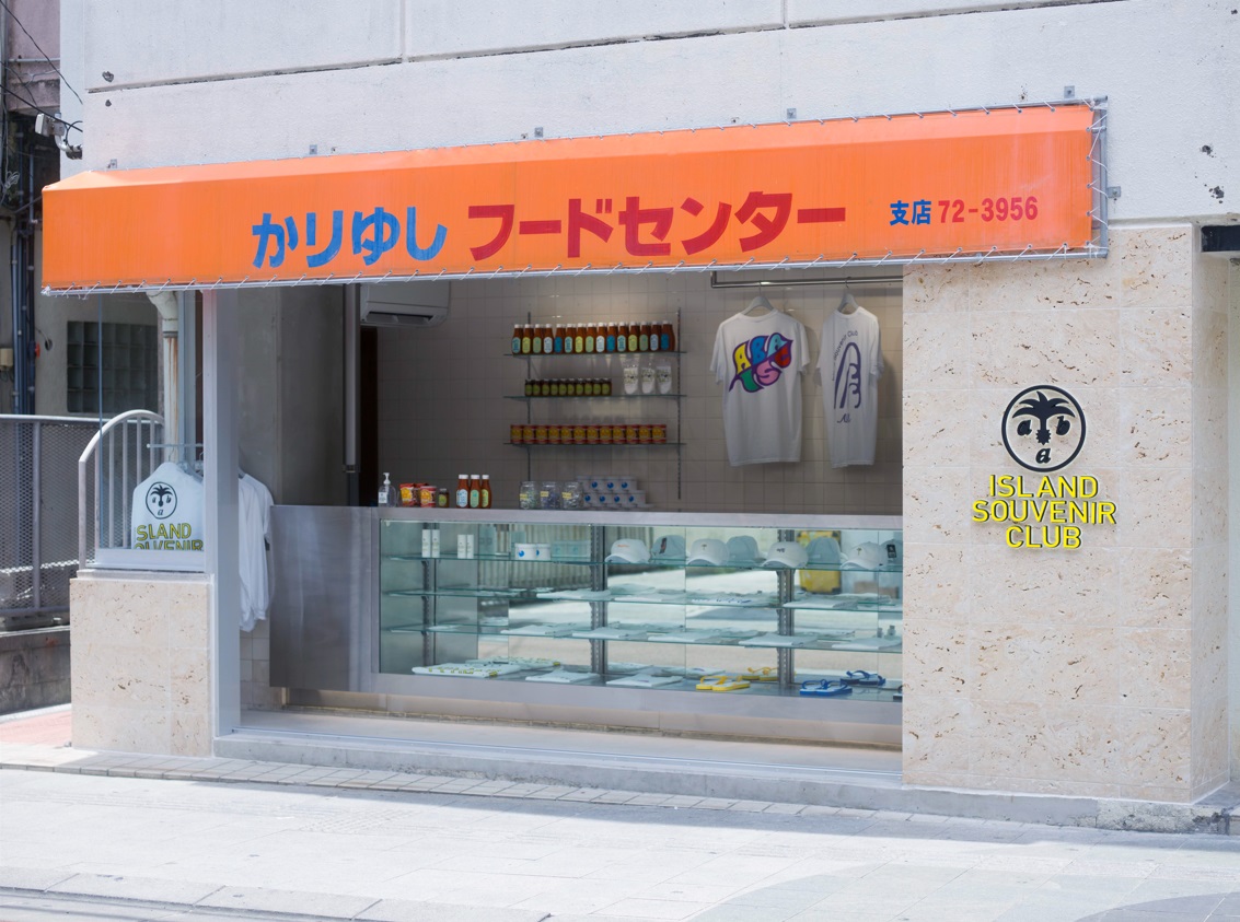 「ABA ISLAND SOUVENIR CLUB(アバ・アイランドスーベニアクラブ) 」は、宮古島市のほぼ中心に位置し、宮古島では最も古い商店街「西里商店街」の中心で、海まで歩けるという立地にあります。お店のアートディレクションには、グラフィックデザイナー・アートディレクターとして活躍するYOSHIROTTEN氏を起用。元お弁当屋の看板「かりゆしフードセンター」は残したまま、外壁には宮古島の石灰石を使い、YOSHIROTTENならではの都会的・未来的な要素を加えアップデートしています。