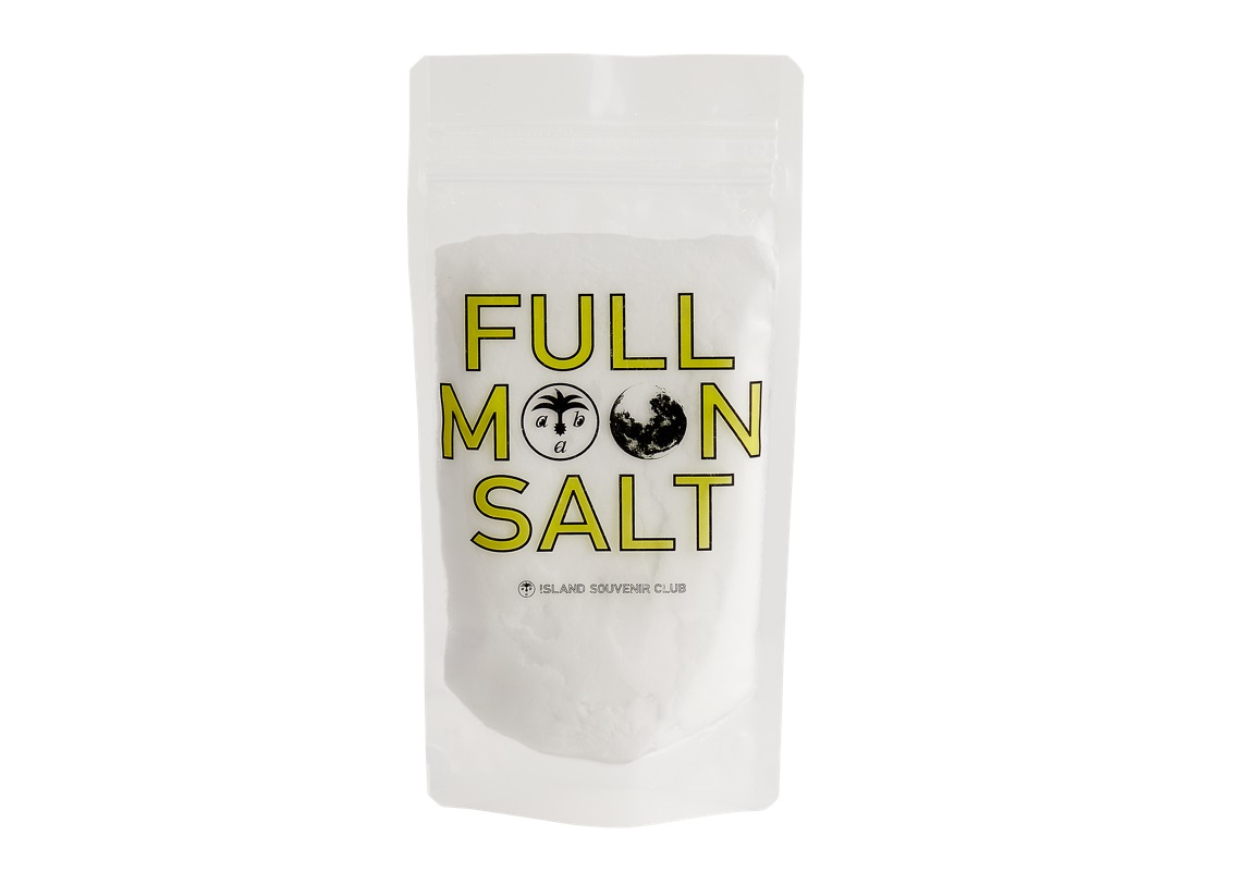 満月の日に沖縄の美しい海から汲み上げた海水で作った、エネルギーの高い塩は、料理のお供やデトックスにおすすめ!「Full Moon Salt 50G」1,980円。