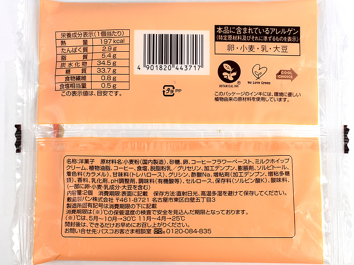 生地にサンドされているのは、ミルクホイップクリームとビターコーヒークリーム。ホイップクリームはなめらかでコク深く、ミルクのまろやかな風味がしっかり感じられます。ねっとり濃厚なビターコーヒークリームも存在感抜群。パンチの効いた深い苦みが楽しめるため、甘さ控えめなスイーツを探している人にもオススメですよ。