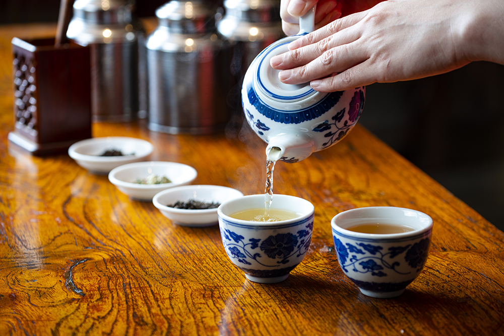 中国茶(茉莉花茶、茘枝紅茶、芒果紅茶、鉄観音、プーアル茶など)、コーヒー、ハーブティー