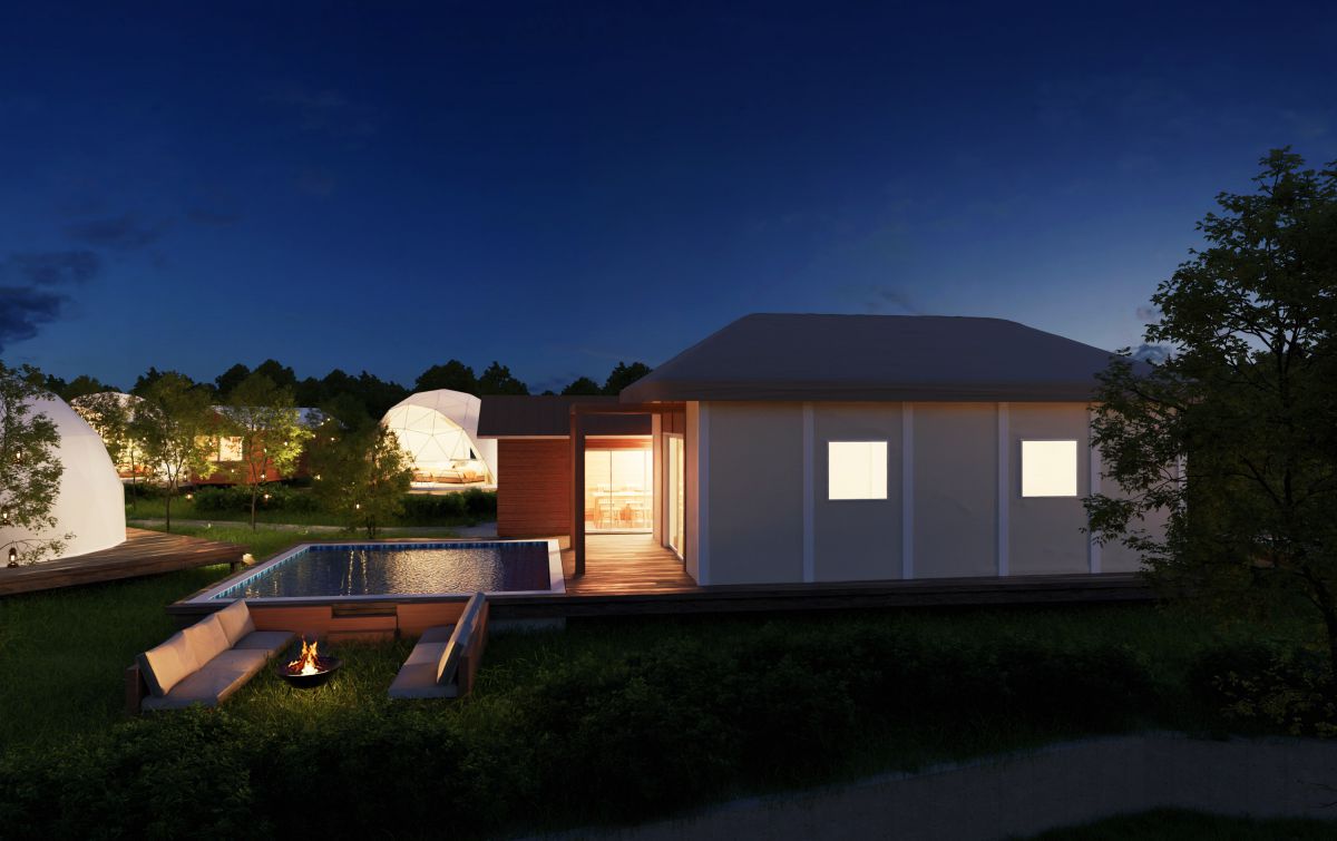 関西初のプライベートプール付きテントを含む3タイプ全10棟の豪華施設