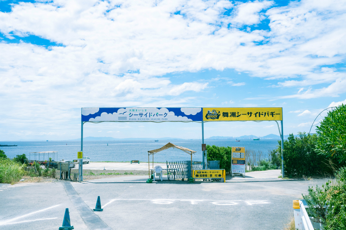 「舞洲バギーパーク」があるのは、大阪市中心部からバスで約20分の「大阪まいしまシーサイドパーク」の一角。毎年春になると辺り一面にネモフィラという花が咲き誇り、青色に染まった風景を楽しむ「ネモフィラ祭り」が開催されSNSなどでも話題になっている場所です。