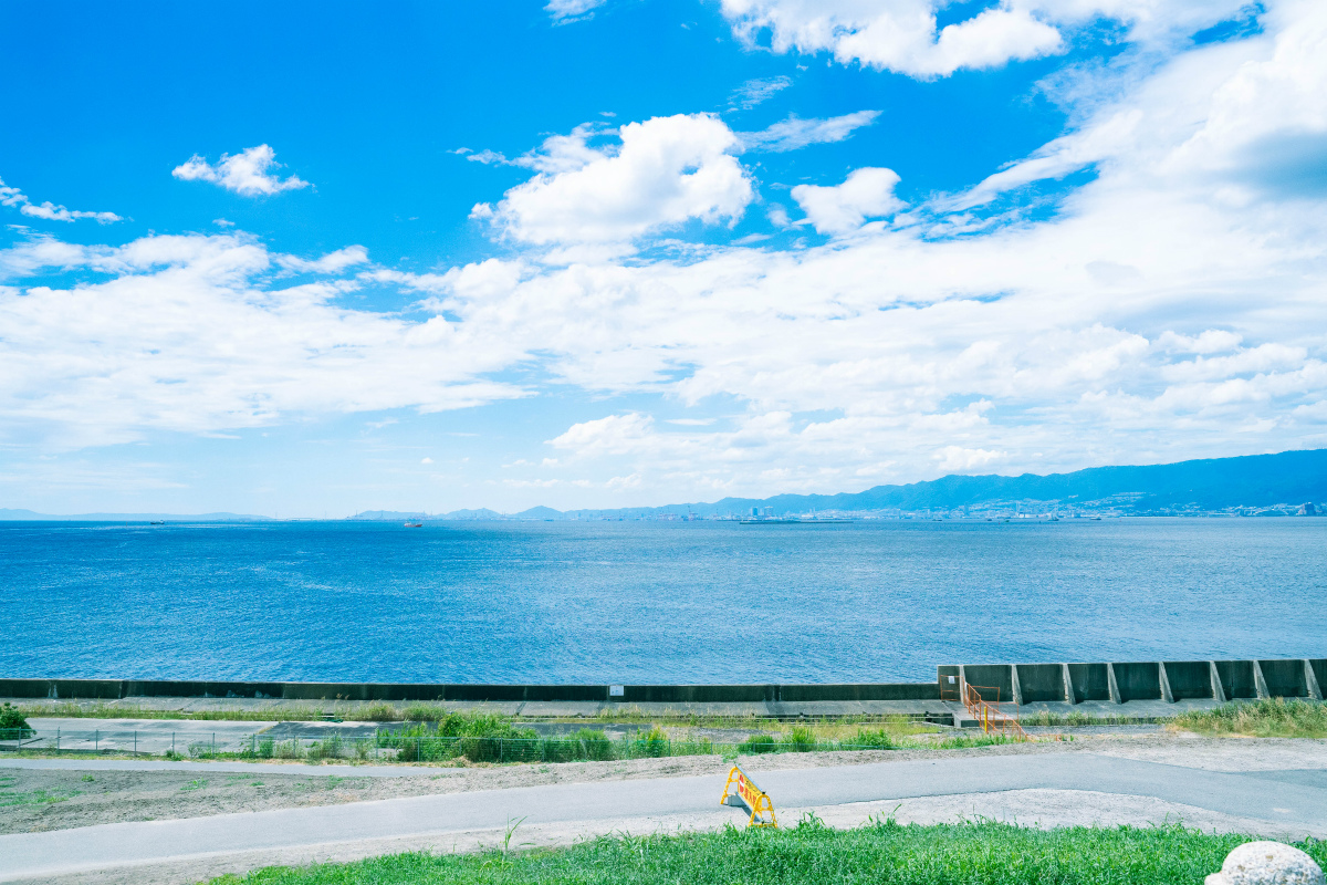 大阪湾に隣接するパークとあって、大阪市内とは思えない抜けの良い景色が目の前に! この眺めだけでも来る価値あり。