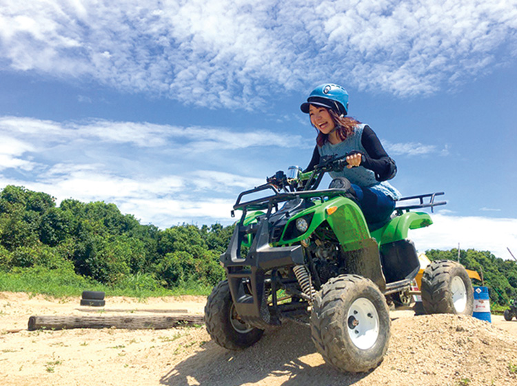 そんな気持ちのいい海沿いで遊べるバギーのメニューは「完全走破45分コース(5800円)」と「体験30分コース(3000円)」の2種類。バイク操縦の経験がなくとも簡単な操作で走行できるので、フルコースで楽しめる「完全走破45分コース」が断然おすすめです。