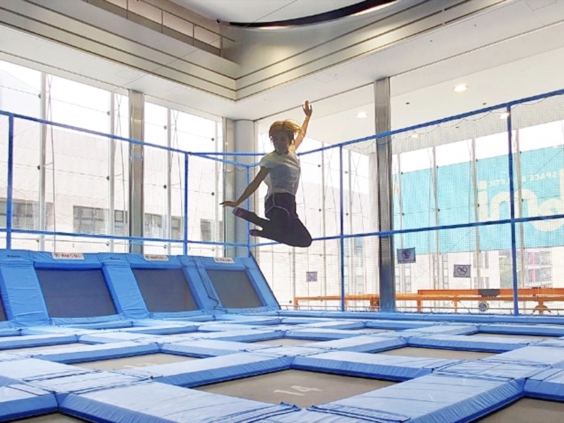 全54面、約200坪もある国内最大級のトランポリンエリアがある「トンデミ平和島」。ご覧の通りテンションが上がるほど広々としていて、トランポリンならではの跳んだときの爽快さと心地よい浮遊感を満喫!