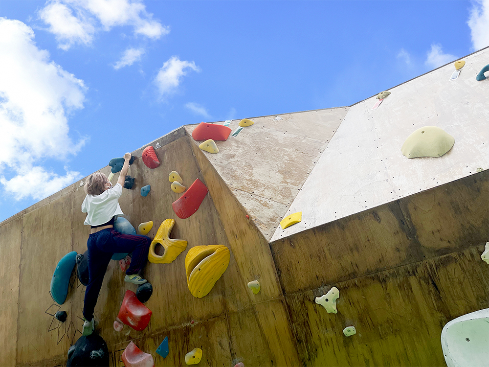 4階のルーフトップに外の空気を感じられるウォールがあるのも「B-PUMP TOKYO 秋葉原」ならでは。そよ風を受けながら登ると、自然のなかでクライミングをしているようでとても気持ちいい!