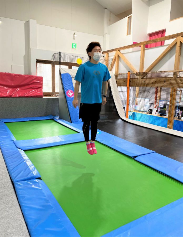 走っていってトランポリンを使って方向転換したり、連続ジャンプをしていくのも楽しいんです!