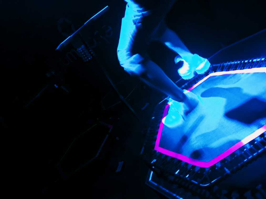 スタジオの中にズラリと並ぶトランポリン。照明が落ち、ブラックライトが当たると、ネオンカラーに光ります。音楽や照明はレッスンによって変わり、まるでクラブにいるかのような高揚感を味わえるんです!