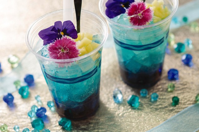 パーク初登場となるシリコーンゴム製のふたが付いたスーベニアタンブラーは、ステラ・ルーをイメージした、ラズベリーゼリーとブルーベリーチーズクリーム入りの甘酸っぱいドリンクとセットで。