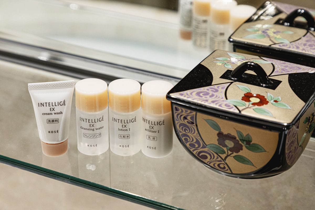 バスアメニティは、厳選された植物素材を使用するフランスのコスメティックブランド、ロクシタン。「シトラスヴァーベナ」の清涼感ある柑橘系の香りは、心と体を涼やかにしてくれます。コーセーのスキンケアケットが用意されているのもうれしいですね。