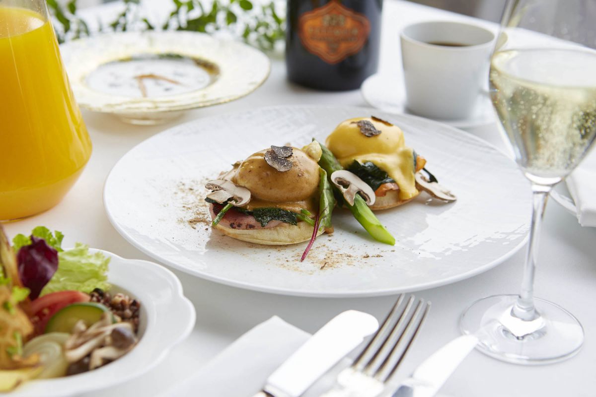 朝食は、メインダイニング「イル・テアトロ」で。搾りたてのフレッシュジュースと卵料理は好みのスタイルをオーダーできます。なかでも女子に人気なのは、エッグベネディクト。オリジナルのハニーハムや焼きたてのパンとともに召し上がれ。