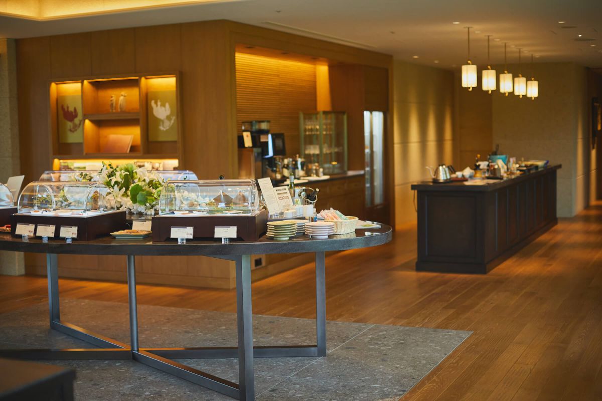 京菓子やホテルメイドのおつまみなどが「ご自由に」とバラエティ豊かに用意されていて、テンションが上がります。ゲストラウンジで過ごすだけでも優雅な気分。