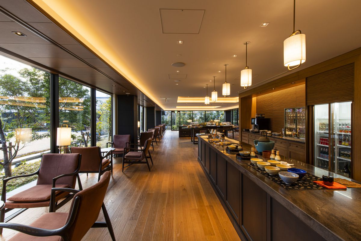 館内は宿泊客以外も入れるゾーンと宿泊客のみが利用できるゾーンがあり、北棟にある眺めのよいゲストラウンジは宿泊客専用となっています。