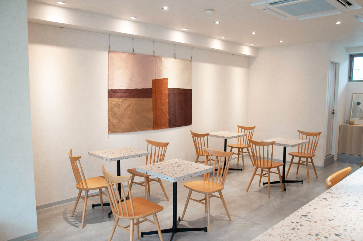 店内は山と氷、箕面の山の連なりにも見えるこの二つがモチーフ。白や淡いグレー、白木をベースとしたナチュラルな空間で、昼下がりや休日にゆっくり過ごすのに最適です。全16席(変更の場合あり)あり、こちらのカウンターは一人でゆっくり過ごすのによさそう。