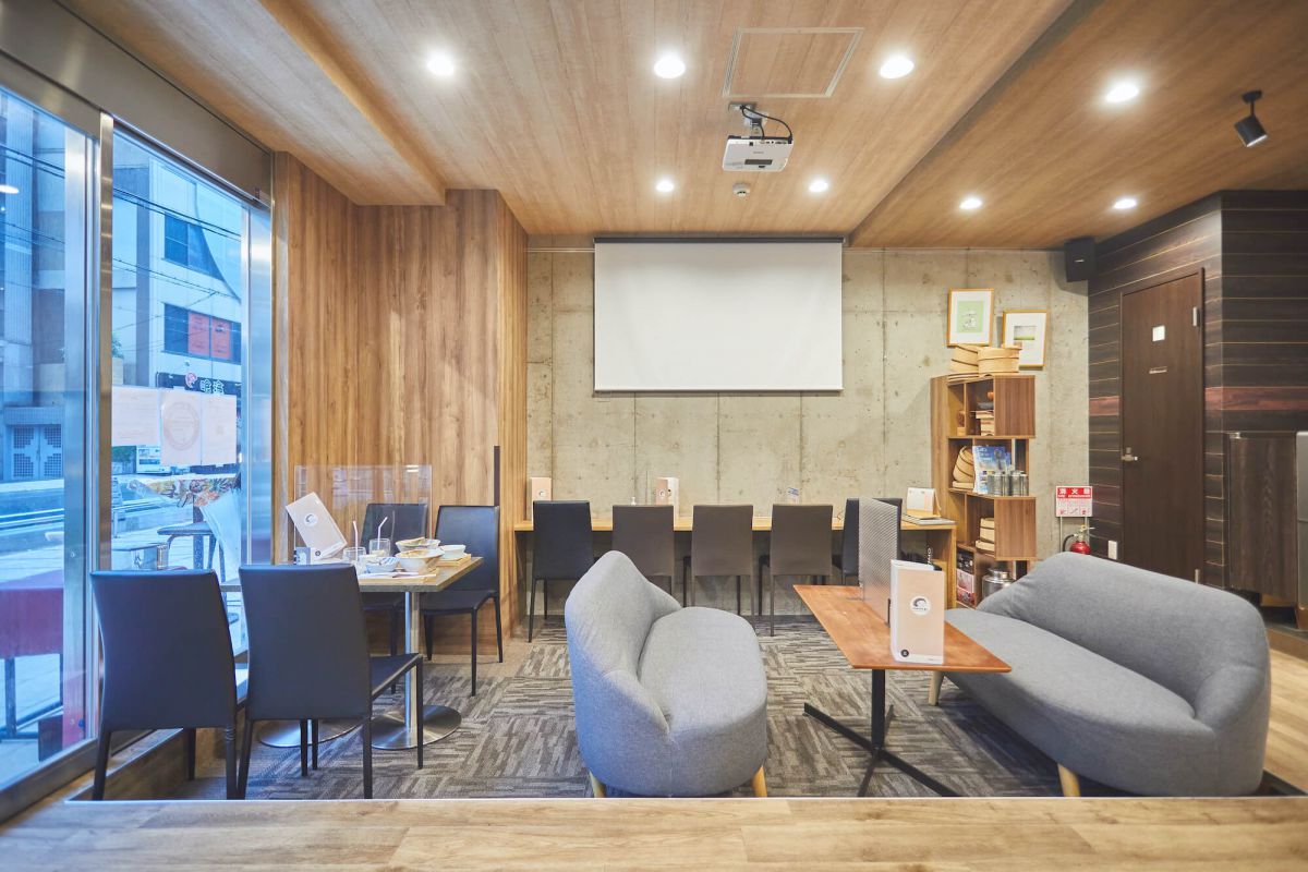 ガラス張りの店内には、ソファー席、壁側のカウンター席、大テーブルを囲む席、テーブル席があって、いろんなシーンに対応してくれそう。