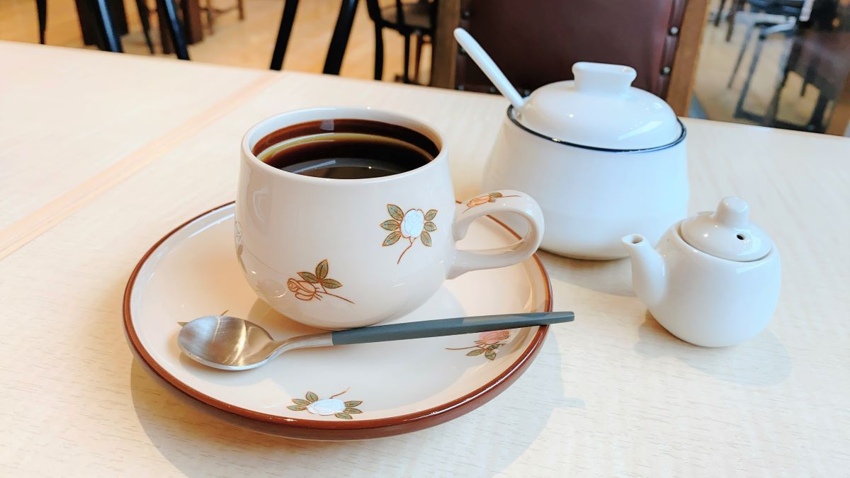 「フロムトップ」はドリンクにも力を入れているとのこと。今回注文したのは、スイーツとの相性も抜群のコーヒー600円。このコーヒー豆は、オリジナルブレンドの「美術館ブレンド」を使っています。その焙煎を手掛けているのが、コーヒー好きなら知らない人はいない、千葉で人気のコーヒー専門店「KUSA.喫茶」なんです!ひと口飲めば華やかでフルーティーな香りにうっとり。毎日飲んでも飽きないスタンダードな味わいの中に「KUSA.喫茶」らしい奥深さがあり、ほんのりとした甘みも感じられます。