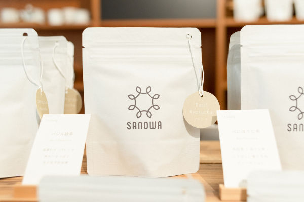 SANOWAとは「お茶の輪」を意味し、人とお茶が輪のようにつながっていくように、という願いを込めて名付けられたそう。人気は日本茶にハーブをプラスしたフレーバーティー。ティーバッグで淹れられるので、気軽に日本茶が楽しめ、ギフトにも好評です。