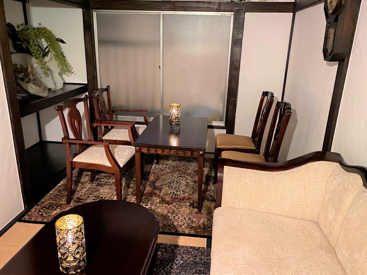 もう1つ特徴的なのが、2階の貸切スペース(1時間1100円、ホームページから要予約)。「elm green coffee」は、もともと海外の方向けの民泊施設だった場所に建てられたそうで、2階はあえてその雰囲気を残しています。畳の和室にモダンな家具が並び、とてもおしゃれで心落ち着く空間が広がっているのです!コロナ禍で外食が心配な方や、お友達同士でゆっくり過ごしたい方にもぴったり。