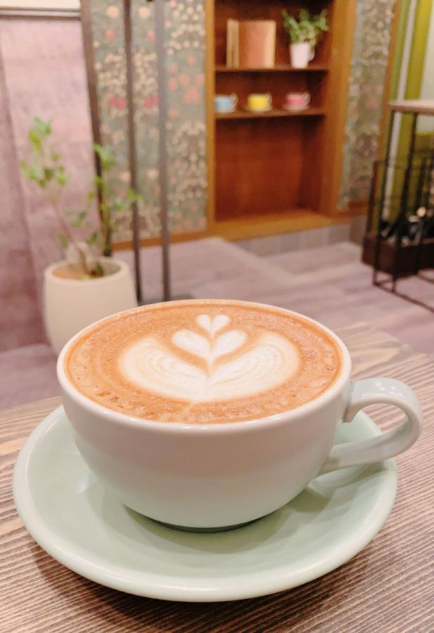「elm green coffee」では、バリスタの山崎さんが厳選したスペシャリティーコーヒーを楽しむことができます。まず注文したのはラテアートがとってもキュートな「カフェラテ」600円。