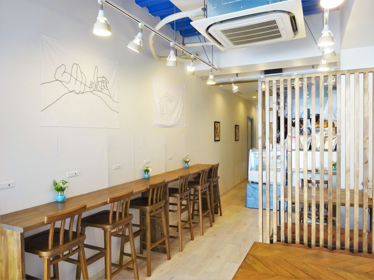 白がキーカラーでウッド調のイスやテーブルを配した内装も、まさに「海の近くにありそう」なカフェそのもの!カウンター席を完備しているので、1人でも気兼ねなく利用できそう。