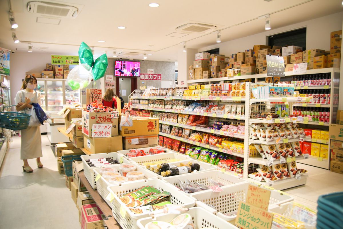 1階はフロア全部を広々と使用した韓国食材スーパー「LEE MART(リー マート)」。ハングル文字のパッケージの商品がずらりと並ぶ店内で、韓国旅行さながらのおみやげショッピングが楽しめます♪こちらの商品も韓国で話題のものをいち早く陳列。現地から直輸入しているので、お得な価格で購入できるのも魅力です。