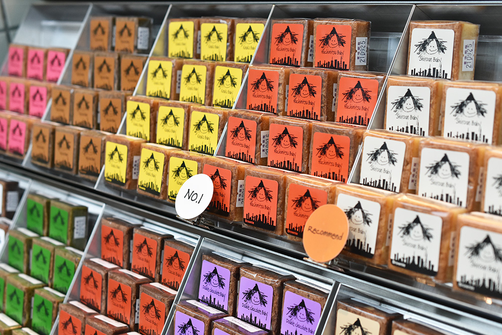 「Fat Witch Bakery 代官山(東京)」で販売されているブラウニーは18種類で、そのうち12種類は日本限定のフレーバー。日本人が食べやすいように本場のサイズよりも小さくカットされているので、名前には“小さい”を意味する“ベイビー”が付けられています。