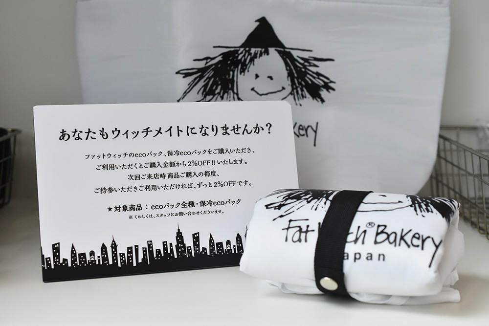 魔女のロゴがかわいいエコバッグを買い、持参するとお会計から2%OFFされるサービスも!エコバッグ購入時だけではなく、お店に持っていくと何度でも割引されるのはうれしすぎる♪