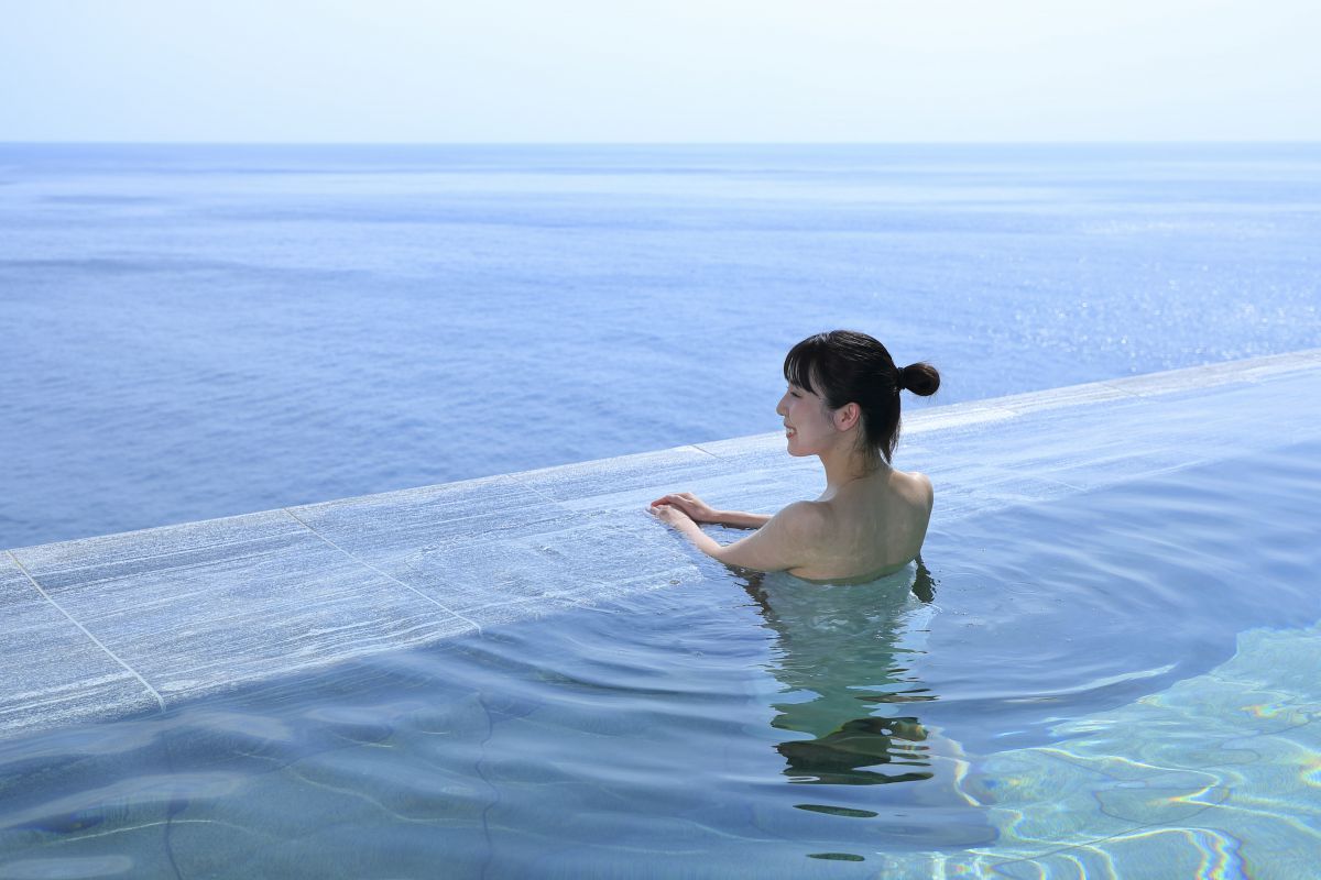 まるで海と一体化! 日本最大級の露天立ち湯 熱海・スパFuua
