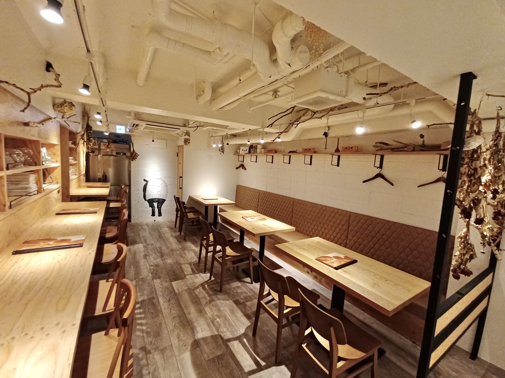 ナチュラルなインテリアに囲まれた落ち着いた雰囲気の店内は、カウンター席とテーブル席の計19席。