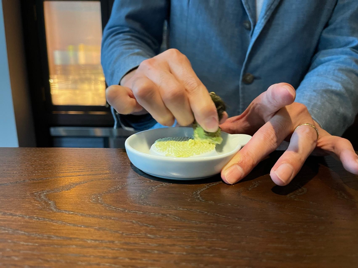 わさびはすってから3〜5分くらいで香りが立ってくるそうで、オーダーしてから実際に目の前ですってくれました。ものすごいわさび味のするドリンクが出てきたらどうしようとドキドキ。